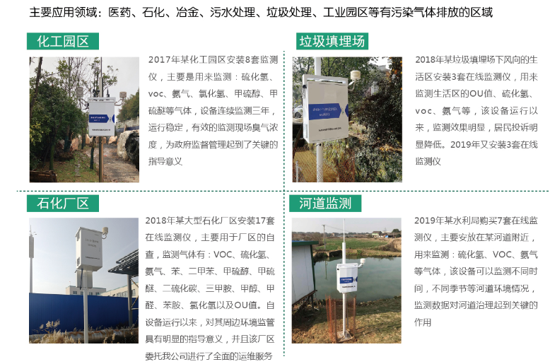 多组分气体监测仪自主研发设计的一款用于检测工业有毒有害气体的仪器,检测气体种类选择范围包括硫化氢、氨气、甲硫醚、甲硫醇、二甲二硫、二硫化碳、苯乙烯、三jia胺、氮氧化物、臭氧、二氧化硫、氯化氢、氯气、TVOC等工业气体,可以基于这些污染气体浓度分析出臭气浓度OU值。用户也可根据实际应用需求定制气体种类、数量及检测范围等。相比较传统的化学法气体检测系统, MG系列多组分气体监测仪具有检测速度快、检测灵敏度高、检测参数多并种类选择灵活、操作简便、系统维护量少等特点,逐步成为环境检测站、工业园区、大型化工制药企业等应对环境空气污染监测的必要的气体检测设备。